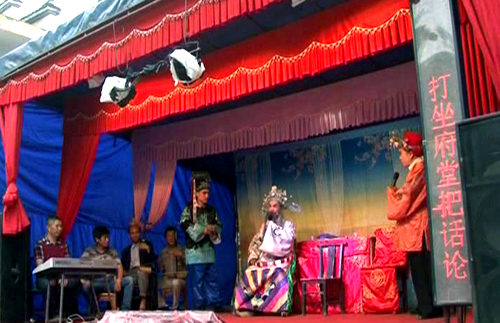 每到大戲開演的時候一定是村里最熱鬧的時候,大家奔走相告,唯恐錯過了好戲。雖然這些戲曲大家不知看了多少遍,但無論如何也不會厭倦。村支書鐘軍岳說,以前村里并不富裕,唱戲的條件自然沒這么好,連演員的服裝都得自己掏錢墊,后來戲越唱越響,來請戲團出去表演的機會多了,大家還能靠唱戲掙錢,這不,2007年戲臺子就搭起來了。