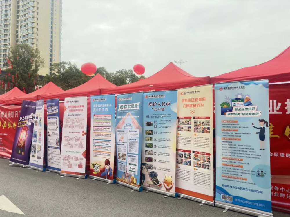 臨湘農商銀行在活動現場專門設置了咨詢服務臺,精心擺放金融產品宣傳易拉寶,工作人員一邊為現場群眾分發金融產品宣傳折頁,一邊耐心解答每一位咨詢者的疑問。從基礎的賬戶開立、存取款服務,到特色的小微企業貸款,再到便捷的電子銀行、移動支付等業務,每一項內容都詳盡講解,力求讓每一位咨詢者都能得到滿意的答案。同時向參會者普及防范電信網絡詐騙、抵制非法集資以及存款保險、個人征信、反假幣、反洗錢、金融消費者保護權益等金融知識,進一步提升公眾的風險防范意識。