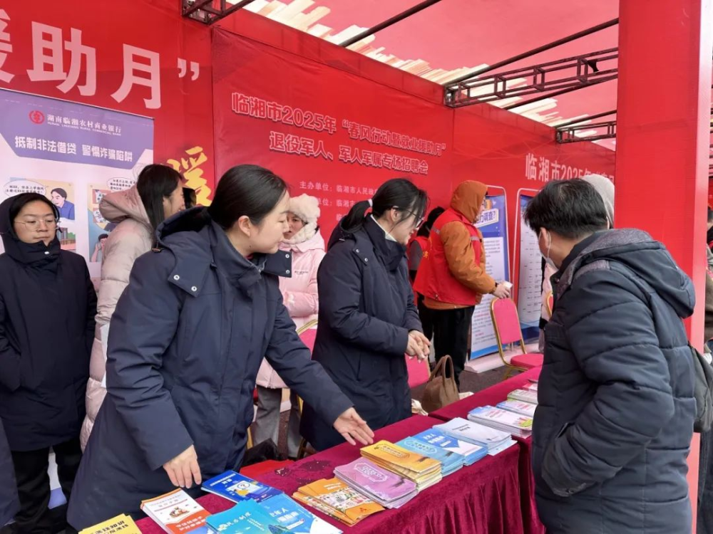 為全面貫徹習近平總書記在中央政治局第十四次集體學習時的重要講話精神,做好春節前后勞動者換崗流動高峰期和企業開工復產關鍵期就業服務工作,2月8日,臨湘市2025年春風行動暨就業援助月專場招聘會在臨湘市人力資源和社會保障局前坪舉行,現場有49家優質企業參與招聘活動,提供就業崗位2000余個。臨湘農商銀行作為唯一受邀的金融機構走進招聘會現場,同步開展社保卡、金融政策、金融知識、金融產品營銷宣傳活動。