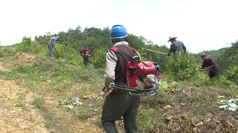 桃林鎮橫鋪村村民葛剛強:現在我們每天都在茶園進行茶(樹)除草撫育,大概要做7、8個小時,一天下來搞得200塊錢,屋里老(人)、小(孩)都照顧好了。