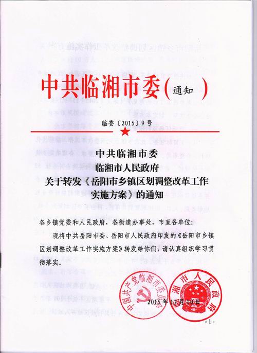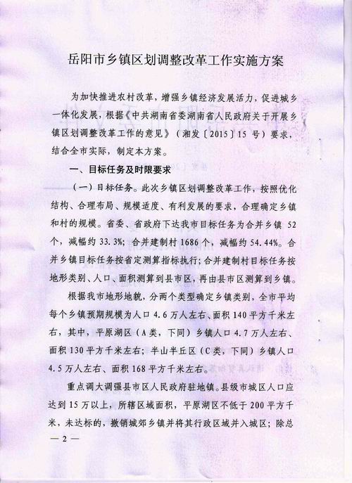 岳陽市鄉鎮區劃調整改革工作實施方案