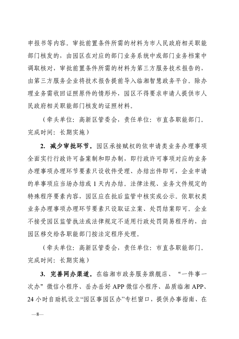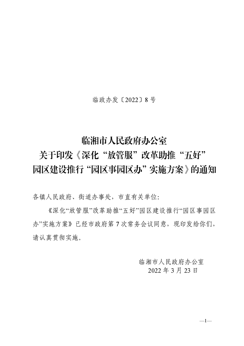臨湘市人民政府辦公室 關于印發(fā)《深化“放管服”改革助推“五好” 園區(qū)建設推行“園區(qū)事園區(qū)辦”實施方案》的通知