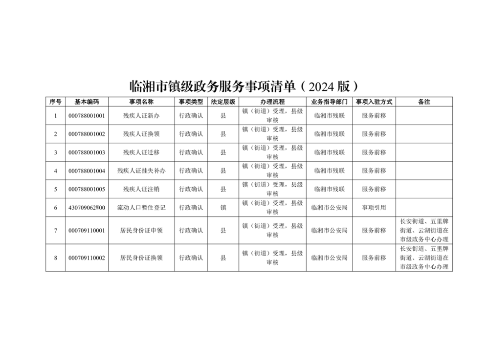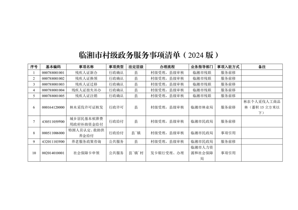 臨湘市鎮(zhèn)級政務(wù)服務(wù)事項清單(2024版)、臨湘市村級政務(wù)服務(wù)事項清單(2024版)