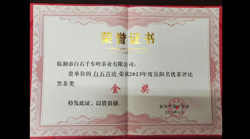 近日,在岳陽(yáng)市舉行的“岳陽(yáng)黃茶·萬(wàn)人品茗”活動(dòng)上傳出喜訊,我市白石千車嶺茶業(yè)公司生產(chǎn)的“白石青磚”榮獲2023岳陽(yáng)名優(yōu)茶評(píng)比黑茶類“金獎(jiǎng)”。