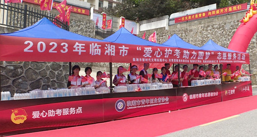 6月7日是高考的第一天,在市第一中學、第五中學考點門口,市青年創業者協會、市青年志愿者協會組織志愿者在考場周邊設立愛心助考服務點,配備了豐富的防暑物資,為高考助力,護航考生順利考試。
