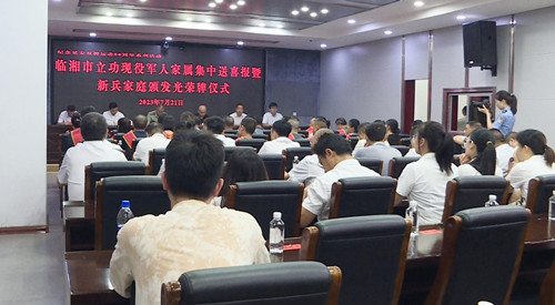 會議宣讀了2023年臨湘籍現役軍人立功受獎情況和新兵入伍名單,并向現役軍人李慶兵等8名立功受獎軍人家庭家屬集中頒發喜報和獎金,為25名新兵家屬代表頒發光榮牌。今年以來,我市陸續收到部隊寄來臨湘籍立功受獎喜報114份,其中三等功25人,四有軍人89人。