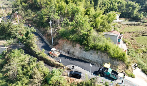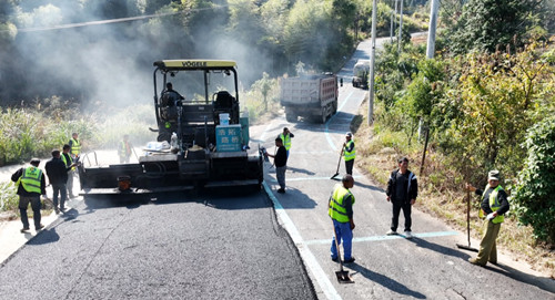 11月11日,在詹橋鎮賀畈社區鴉山公路“白改黑”施工現場,瀝青攤鋪機“轟隆”作響,壓路機來回平壓,施工人員忙著攤鋪、碾壓、封邊,大家分工協作,建設場面一片火熱。