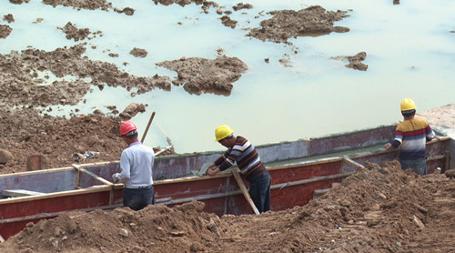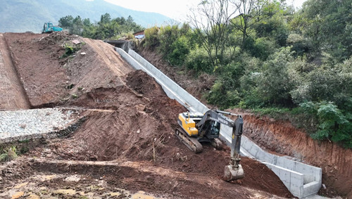 11月4日,在忠防鎮沙坪村官山水庫整修施工現場,伴隨著挖掘機的轟鳴聲,一鏟鏟淤泥被清理出來運往指定地點,工人們忙著砌水渠、鋪石板、清理溝道,干得熱火朝天。目前,該水庫整修工程已完成780m水毀灌漿,123m³下游貼坡排水,45m溢洪道襯砌,有望12月份全部竣工。