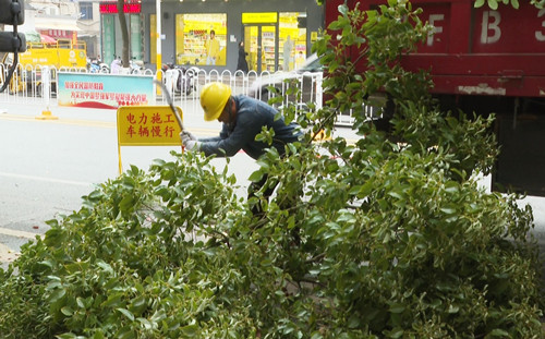 行動中,工作人員嚴格按照安全操作規程,利用長柄柴刀、電鋸等工具,“剪”去“缺乏邊界感”的樹木干枝,確保樹木自然生長高度和架空電力線路之間保持安全距離。