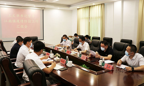 在江南鎮和黃蓋鎮,王文華一行通過座談聽取匯報,詳細了解兩鎮疫情防控和當前重點工作情況。