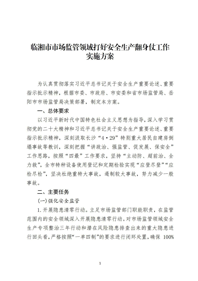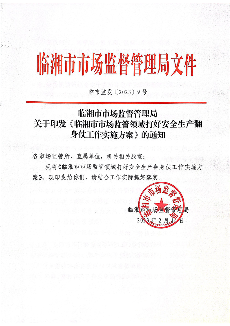 臨湘市市場監管領域打好安全生產翻身仗工作實施方案