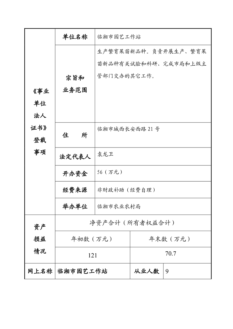 2023年度事業單位法人年度報告書—臨湘市園藝工作站