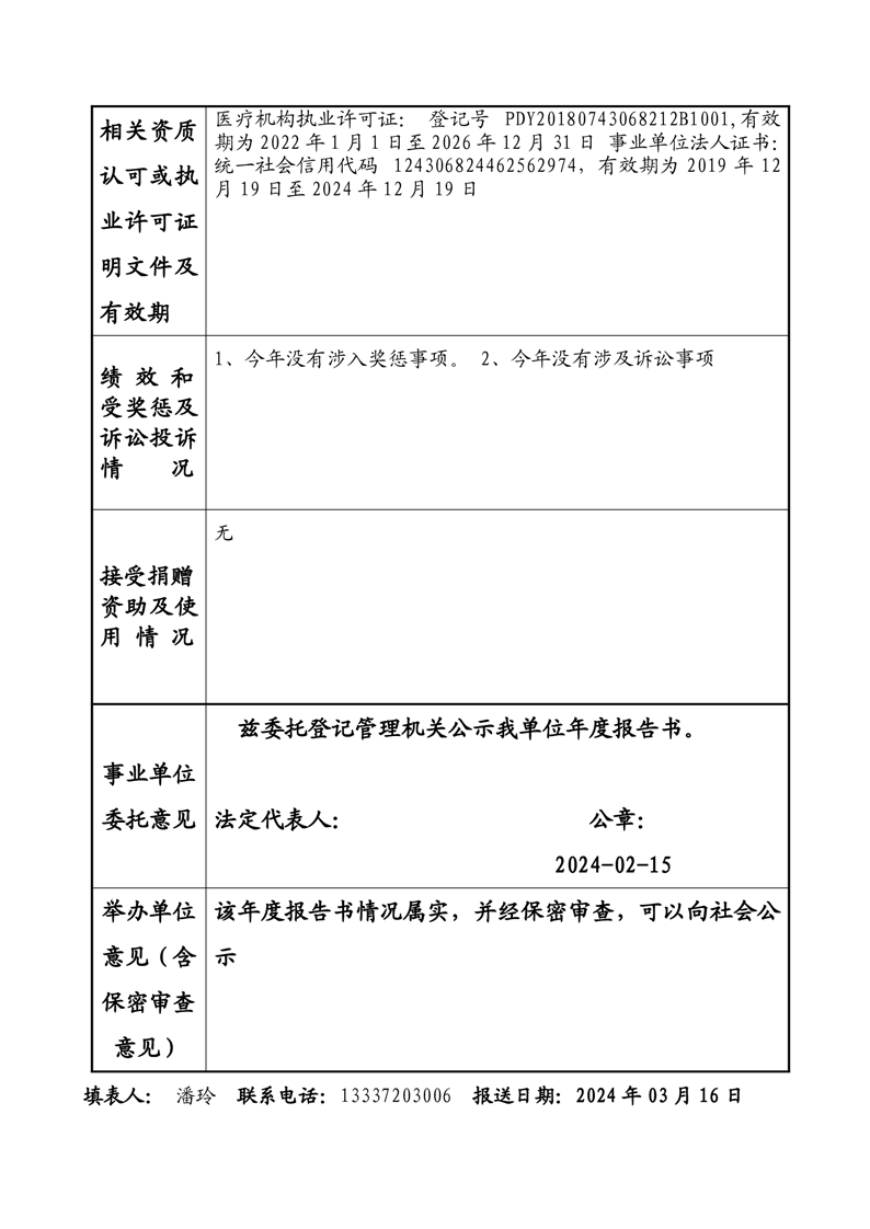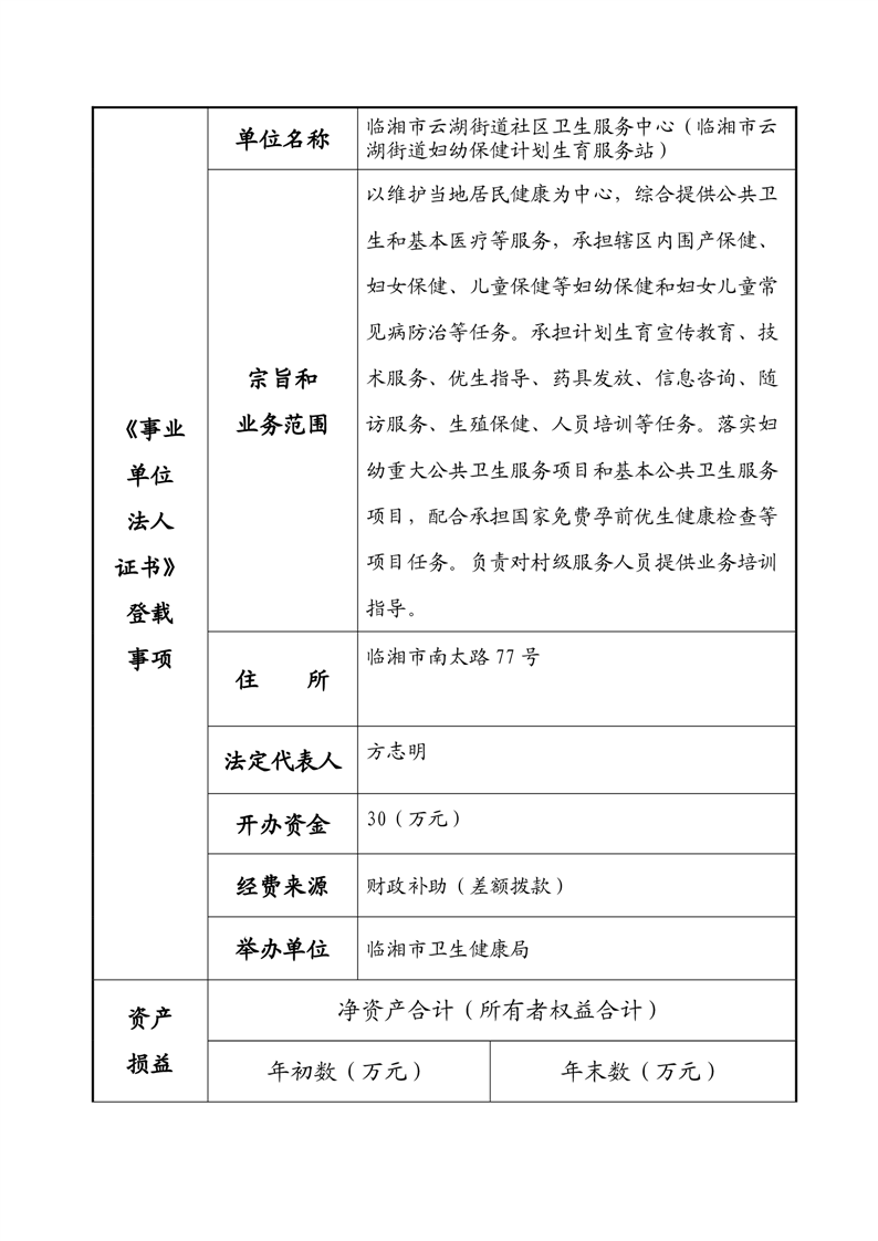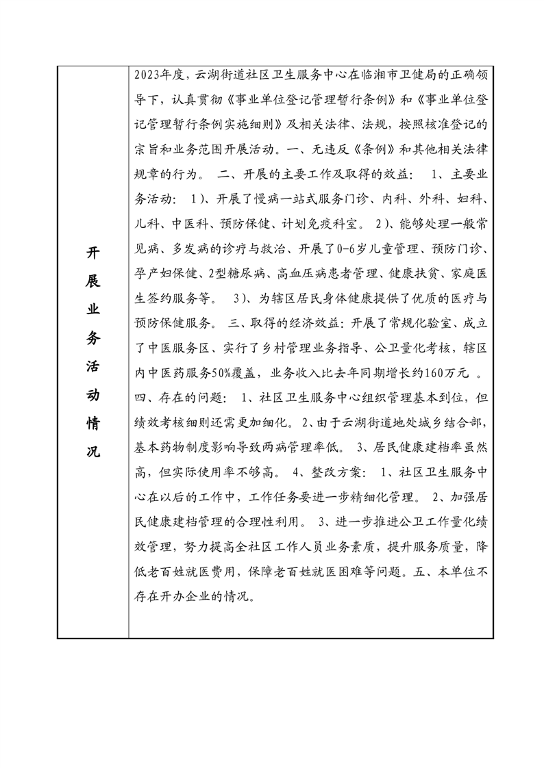 2023年度事業單位法人年度報告書—臨湘市云湖街道社區衛生服務中心