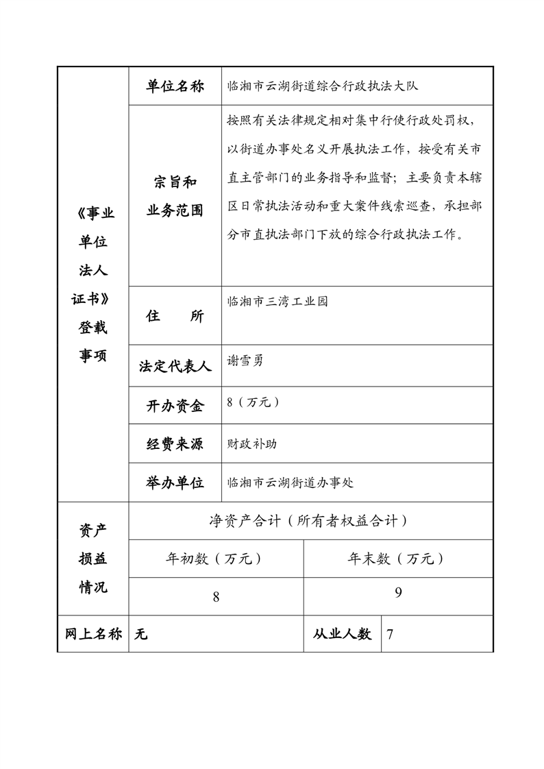 2023年度事業單位法人年度報告書—臨湘市云湖街道綜合行政執法大隊