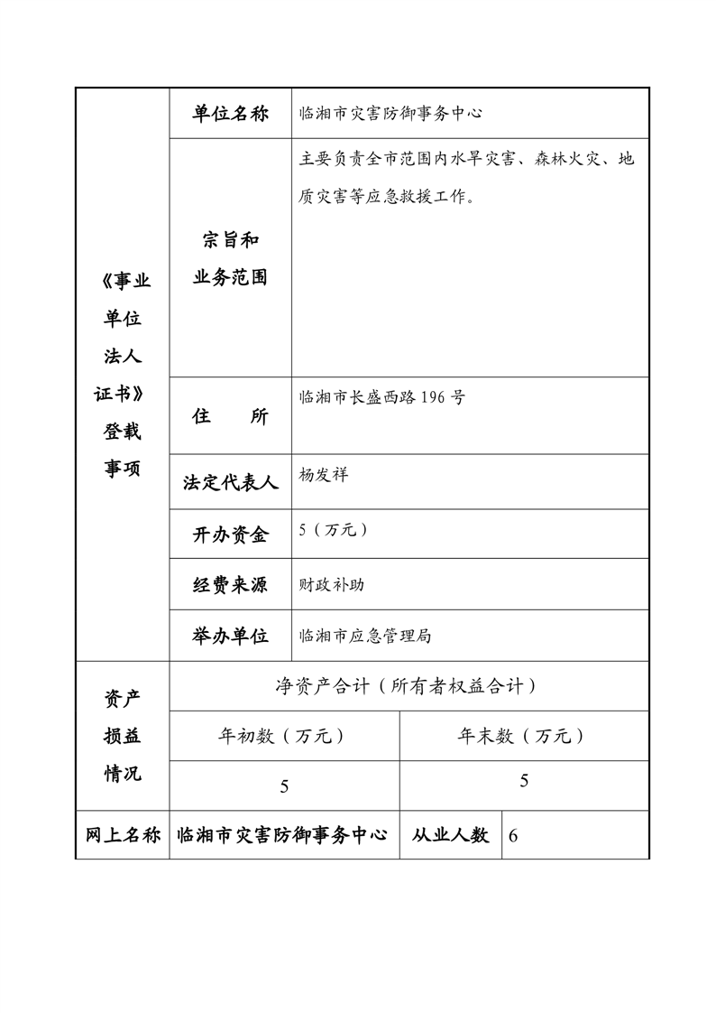 2023年度事業(yè)單位法人年度報告書—臨湘市災害防御事務中心