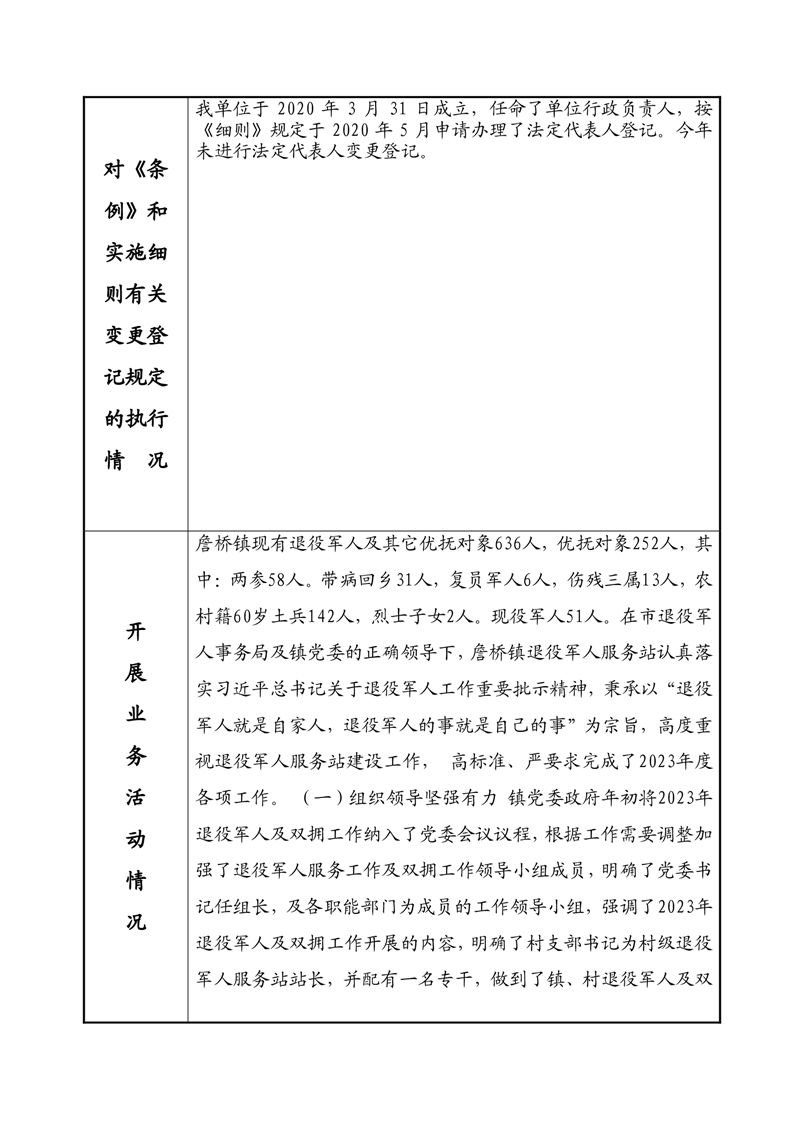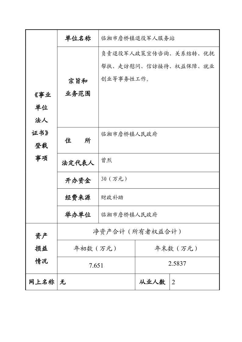 2023年度事業單位法人年度報告書—l臨湘市詹橋鎮退役軍人服務站