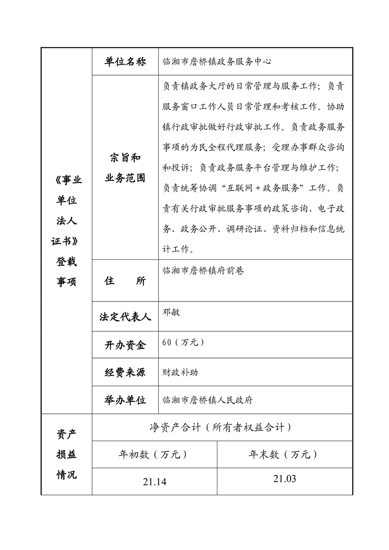 2023年度事業單位法人年度報告書—臨湘市詹橋鎮政務服務中心
