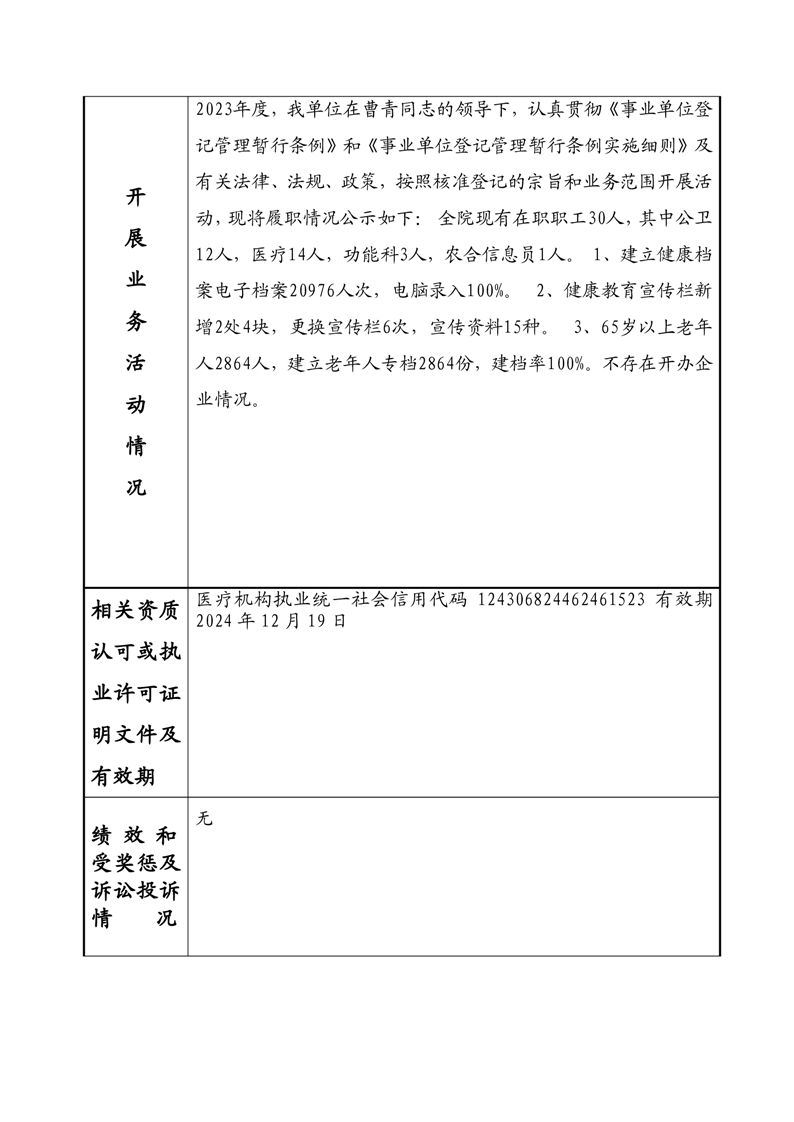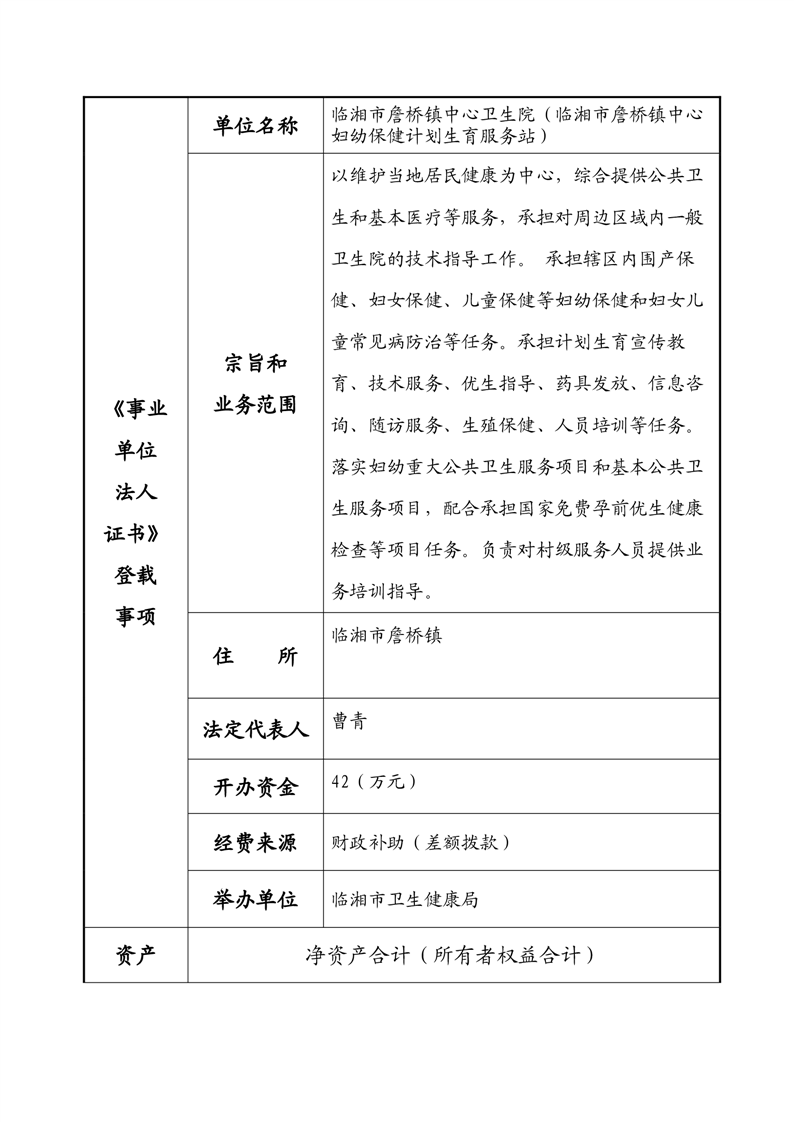 2023年度事業(yè)單位法人年度報告書—臨湘市詹橋鎮(zhèn)中心衛(wèi)生院
