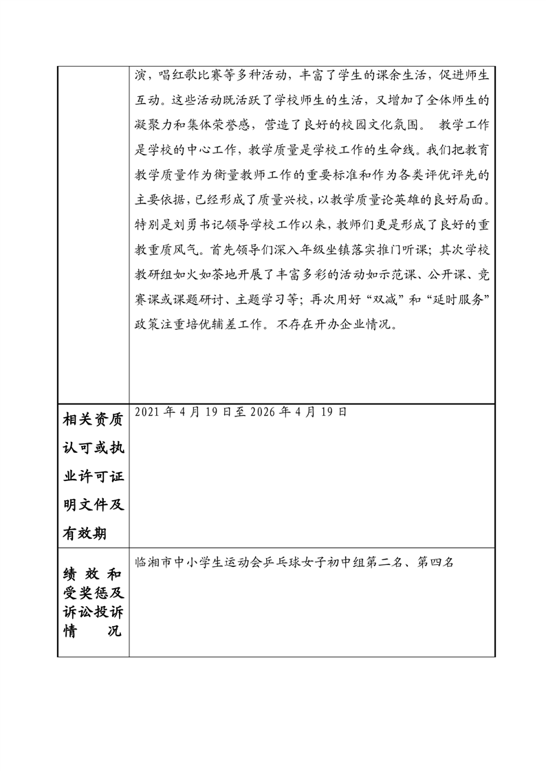 2023年度事業單位法人年度報告書—臨湘市詹橋中學