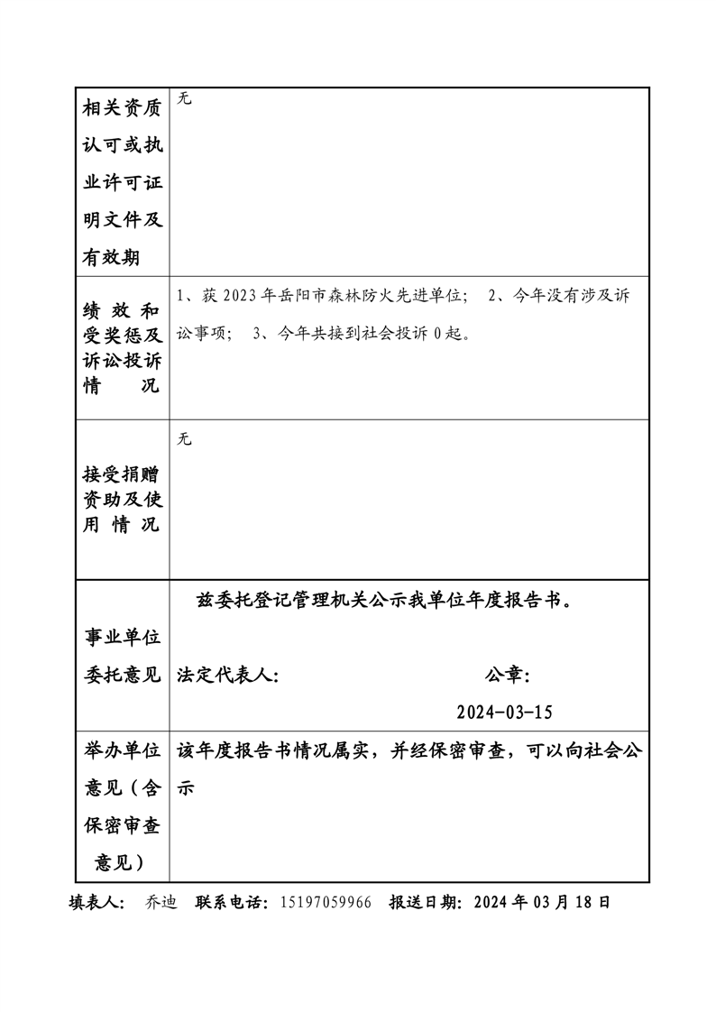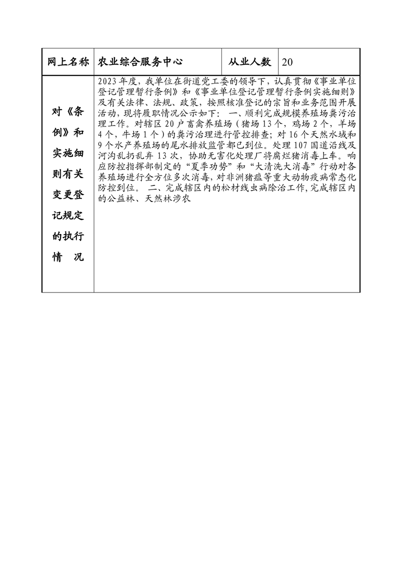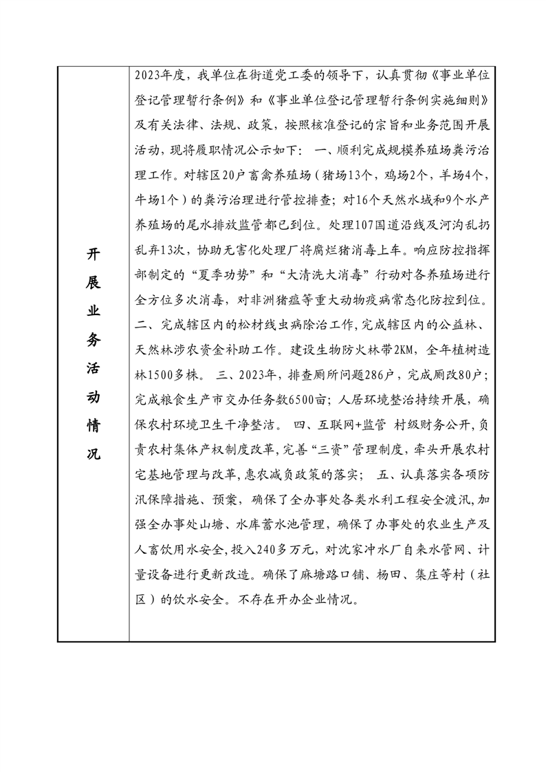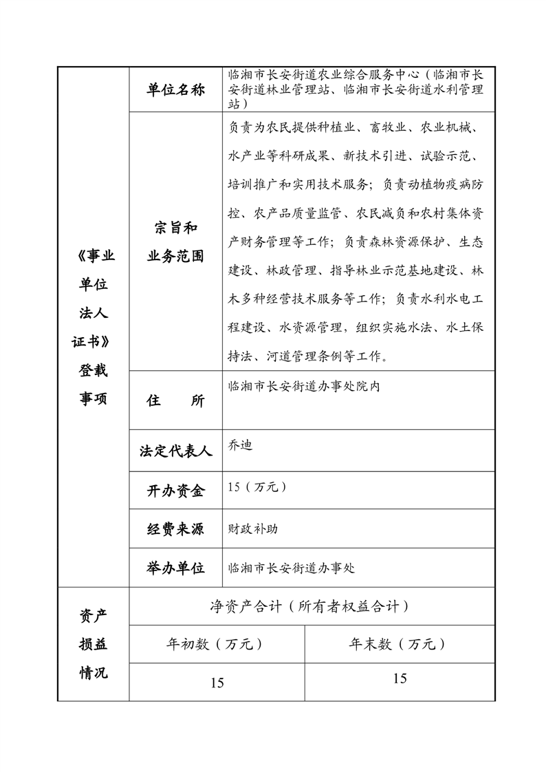 2023年度事業單位法人年度報告書—臨湘市長安街道農業綜合服務中心