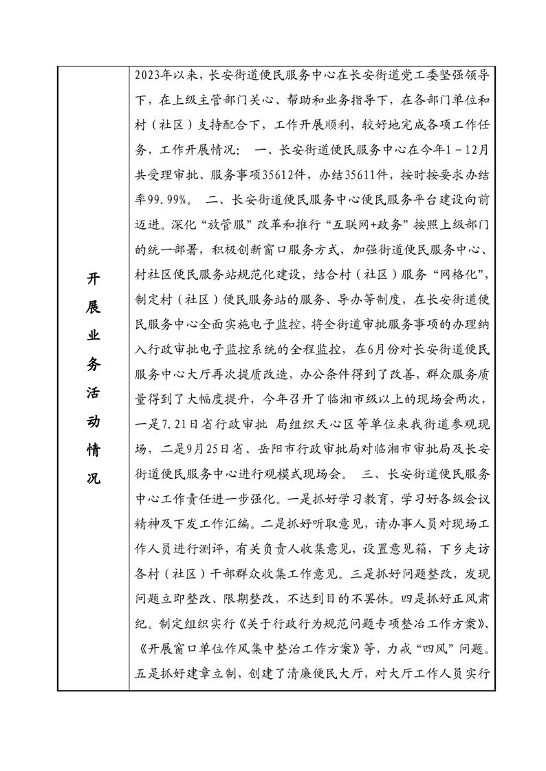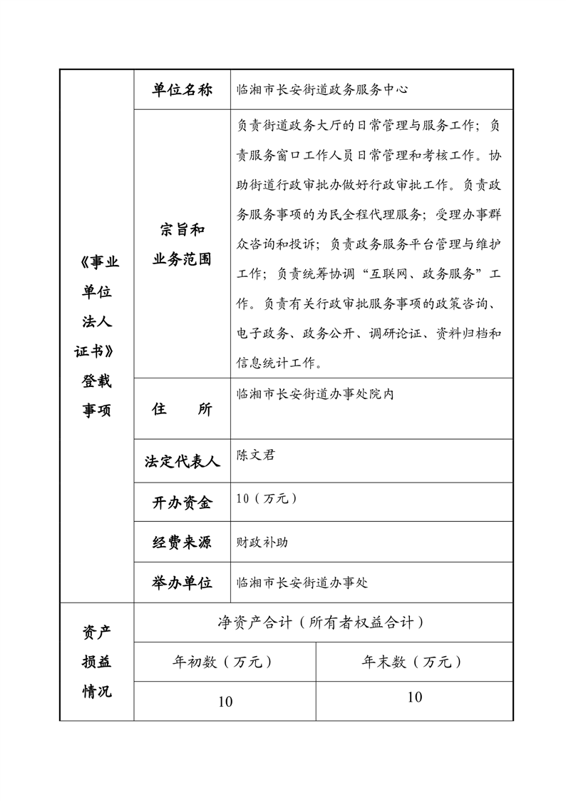 2023年度事業單位法人年度報告書—臨湘市長安街道政務服務中心