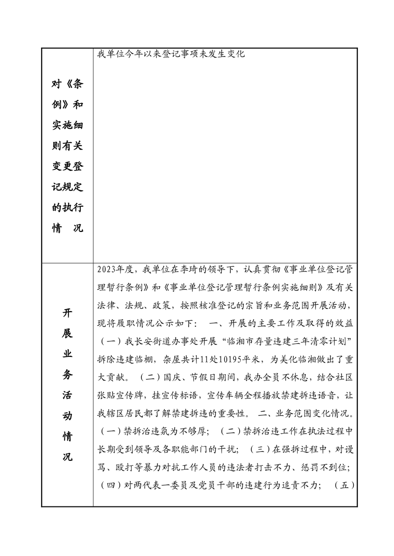 2023年度事業(yè)單位法人年度報告書—臨湘市長安街道綜合行政執(zhí)法大隊