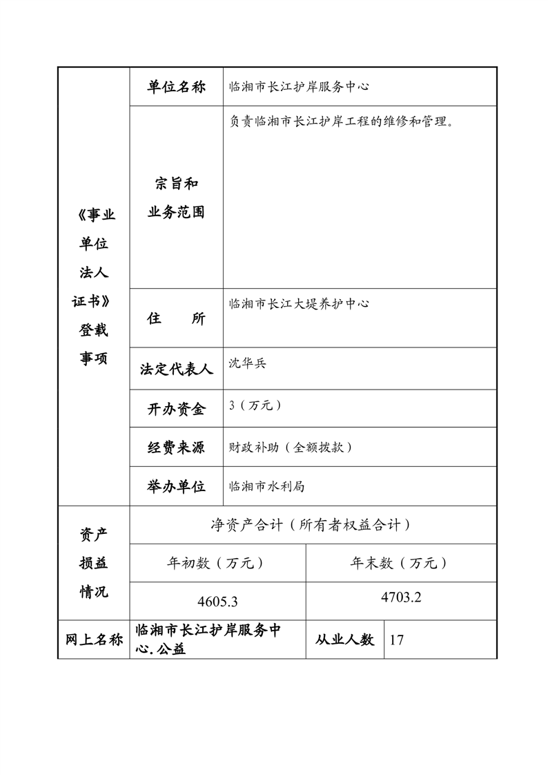 2023年度事業單位法人年度報告書—臨湘市長江護岸服務中心