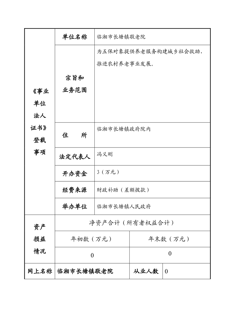 2023年度事業單位法人年度報告書—臨湘市長塘鎮敬老院