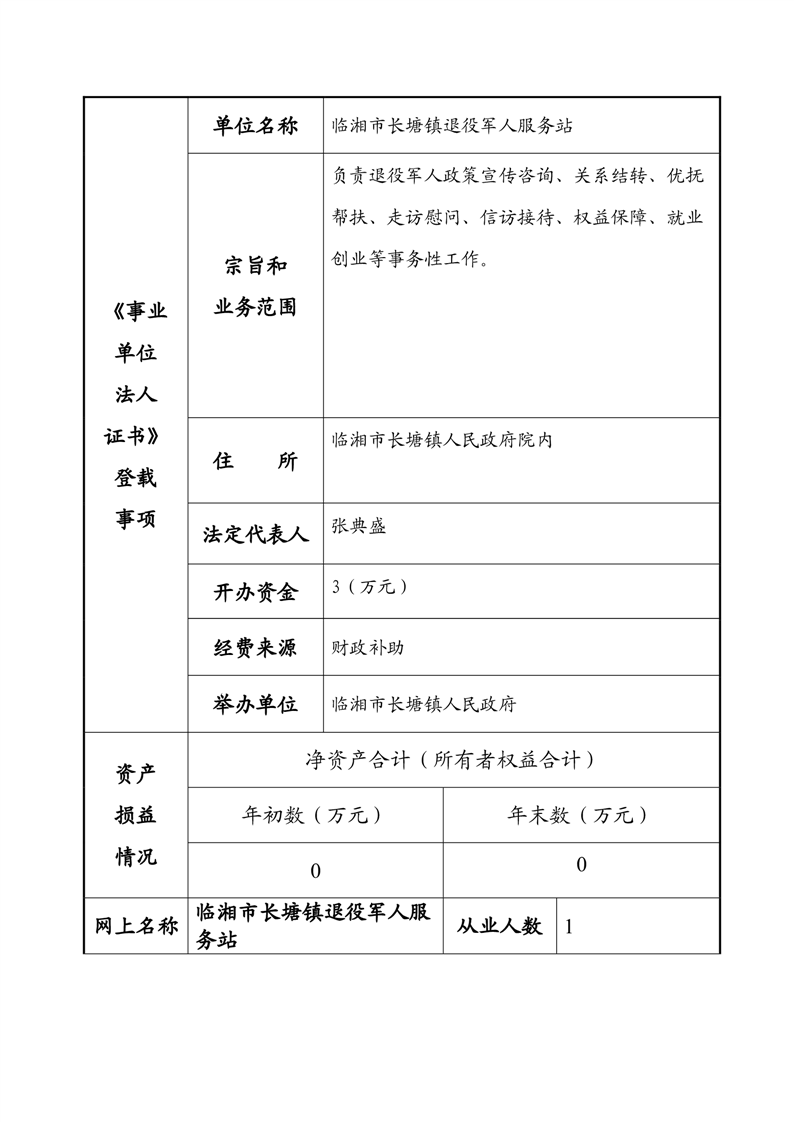 2023年度事業單位法人年度報告書—臨湘市長塘鎮退役軍人服務站