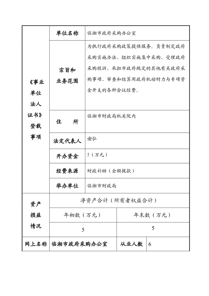 2023年度事業單位法人年度報告書—臨湘市政府采購辦公室