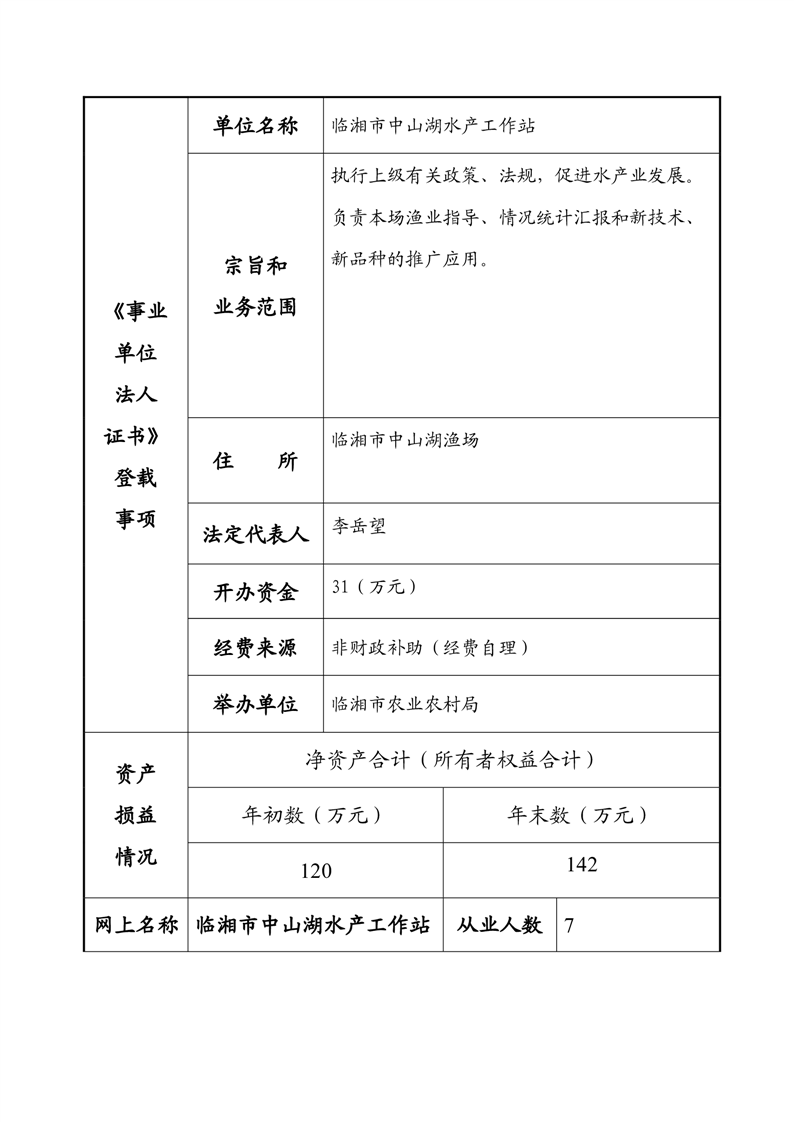 2023年度事業單位法人年度報告書—臨湘市中山湖水產工作站