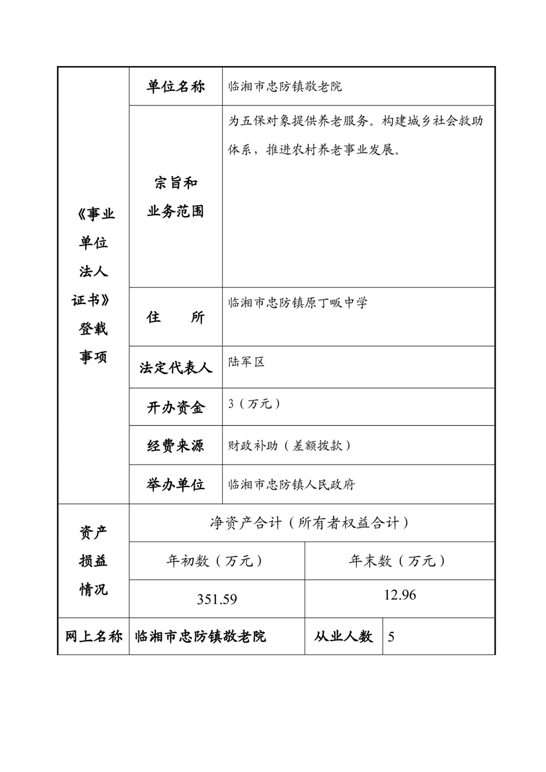 2023年度事業單位法人年度報告書—臨湘市忠防鎮敬老院
