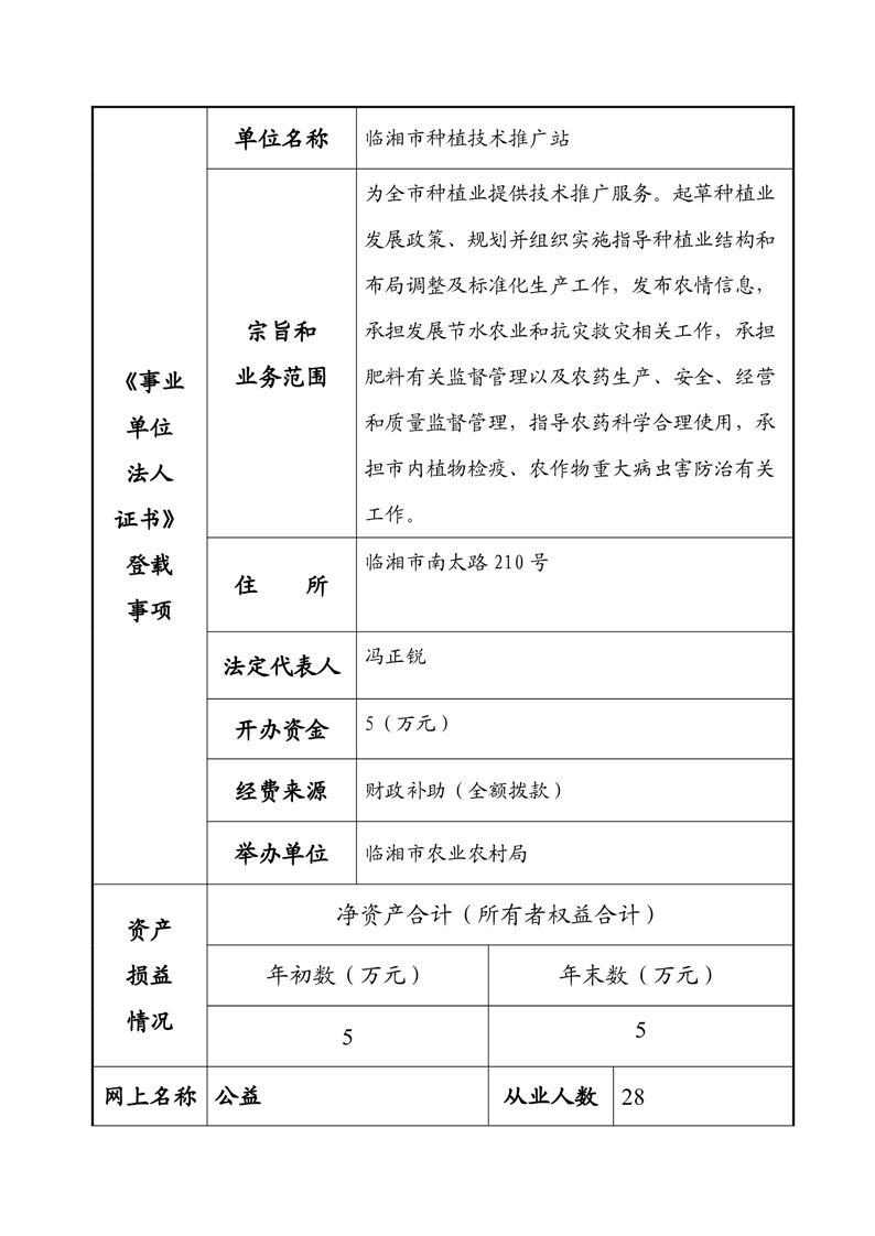2023年度事業單位法人年度報告書—臨湘市種植技術推廣站