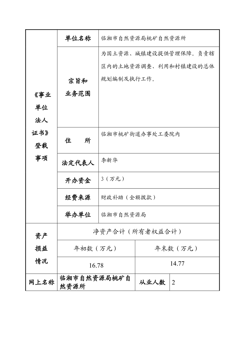 2023年度事業(yè)單位法人年度報告書—臨湘市自然資源局桃礦自然資源所