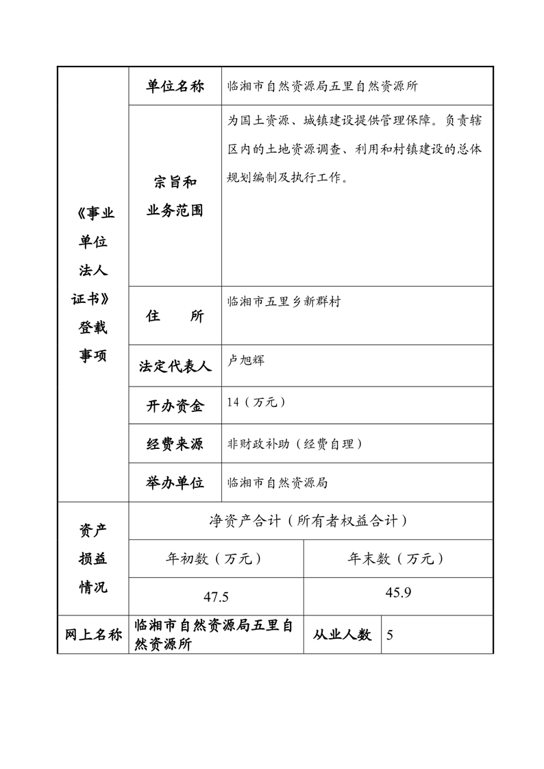 2023年度事業單位法人年度報告書—臨湘市自然資源局五里自然資源所