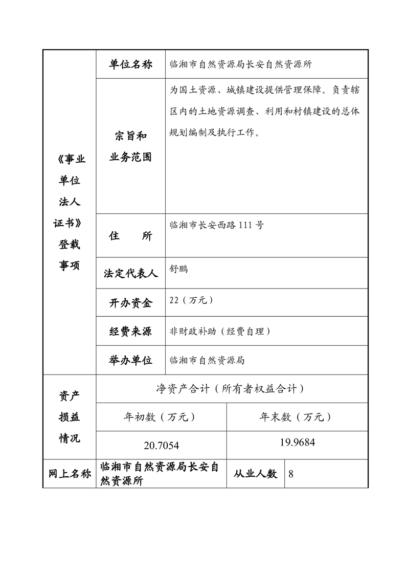 2023年度事業單位法人年度報告書—臨湘市自然資源局長安自然資源所