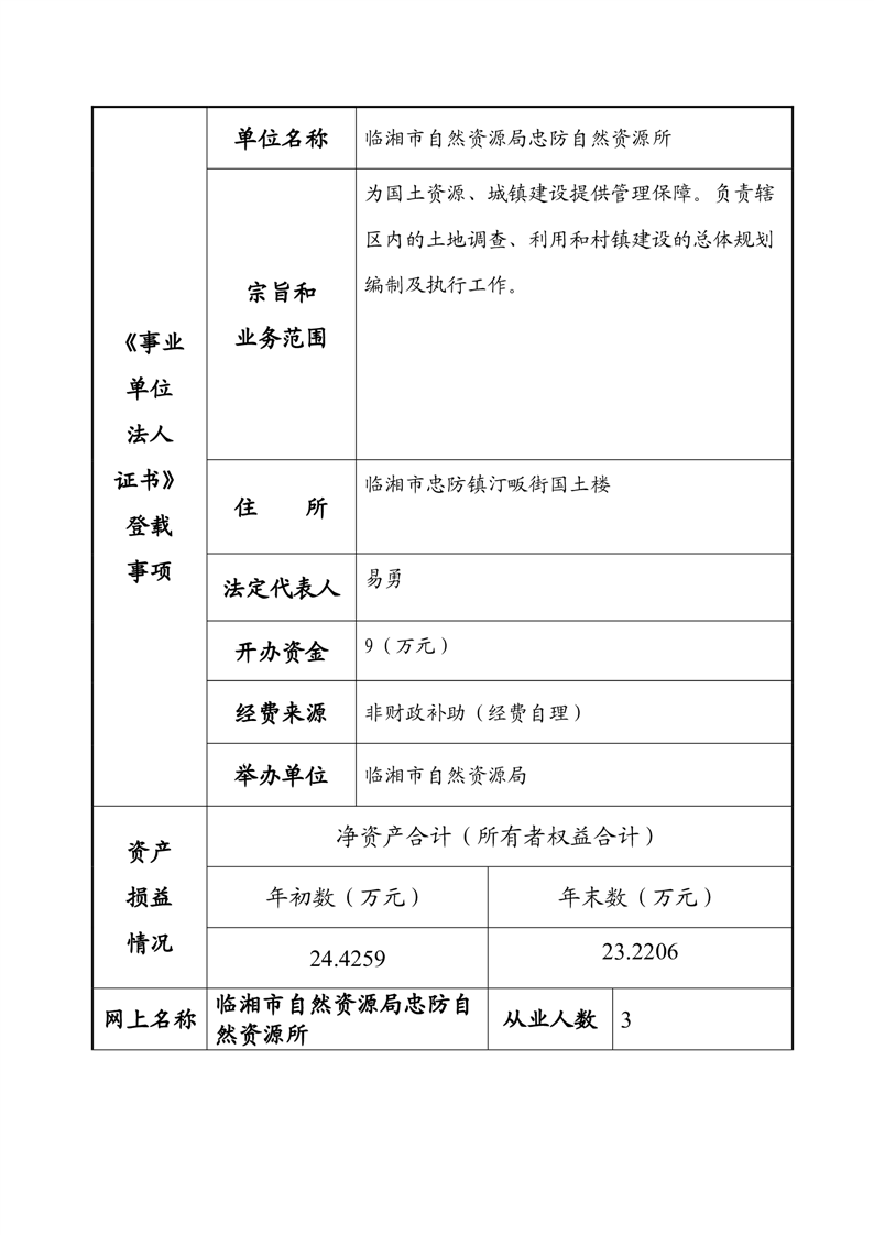 2023年度事業(yè)單位法人年度報(bào)告書(shū)—臨湘市自然資源局忠防自然資源所