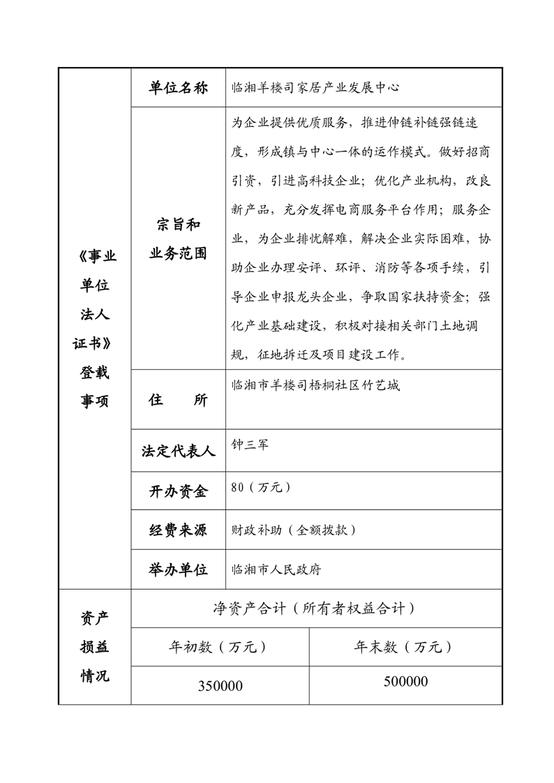 2023年度事業單位法人年度報告書—臨湘市羊樓司家居產業發展中心