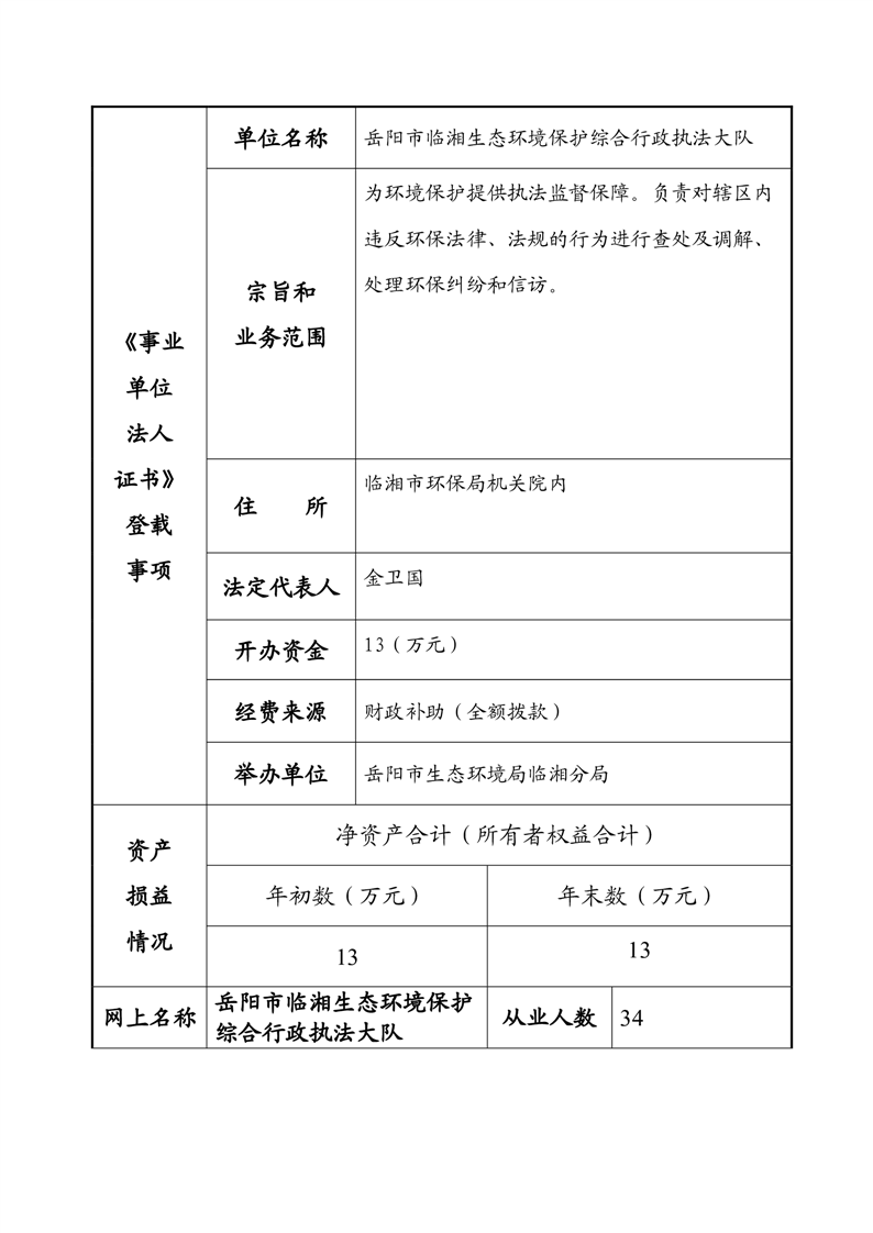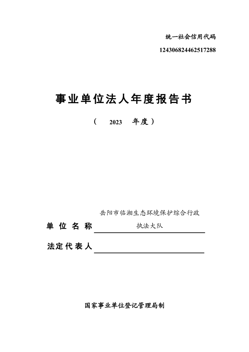 2023年度事業(yè)單位法人年度報(bào)告書—岳陽市臨湘生態(tài)環(huán)境保護(hù)綜合行政執(zhí)法大隊(duì)