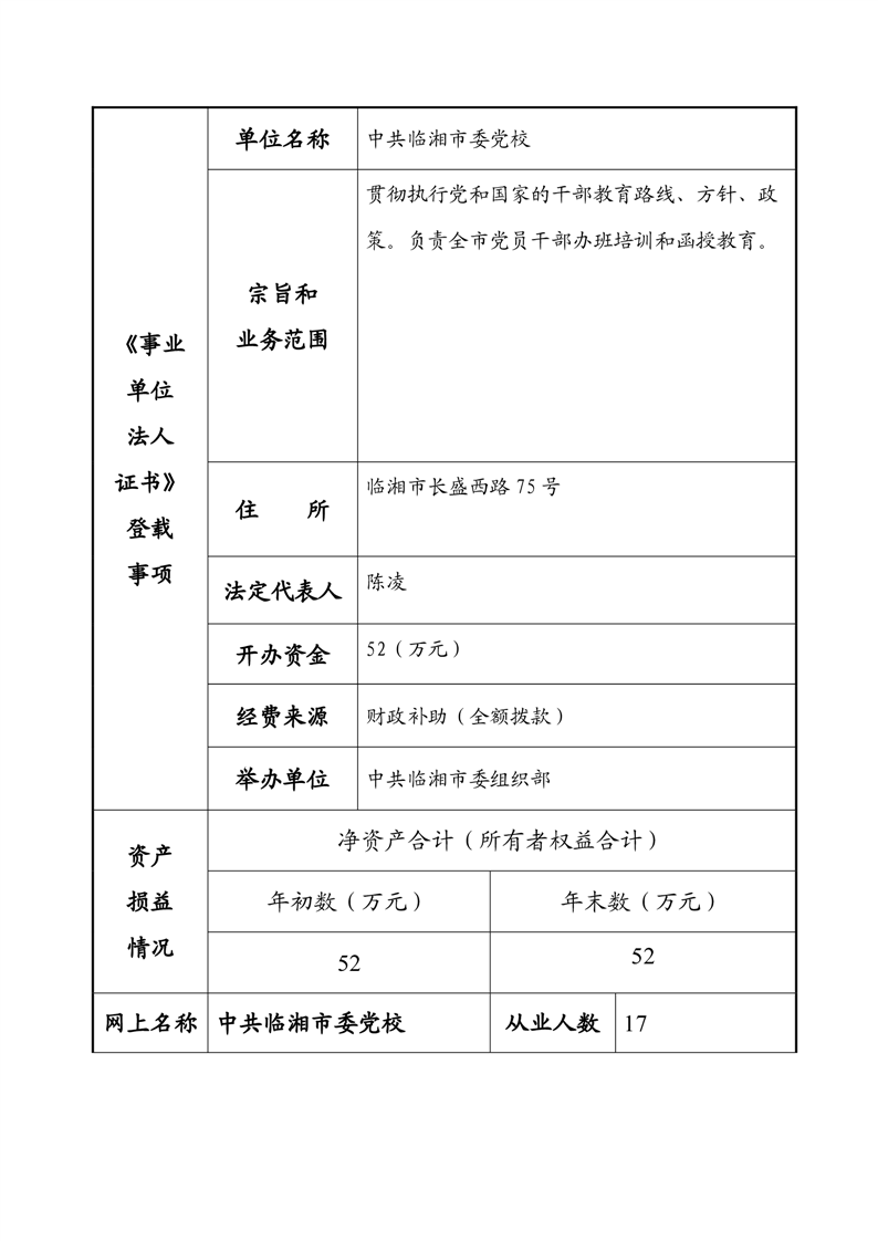 2023年度事業單位法人年度報告書—中共臨湘市委黨校