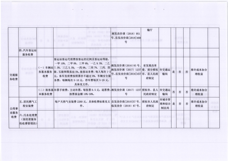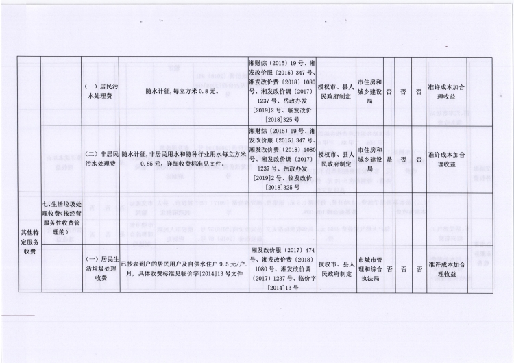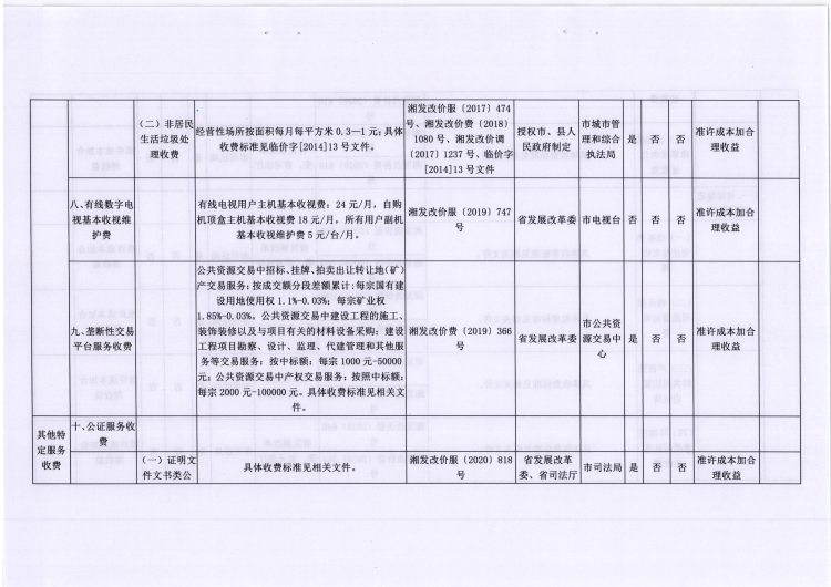 臨湘市政府定價的經營服務性收費目錄清單(2020版)