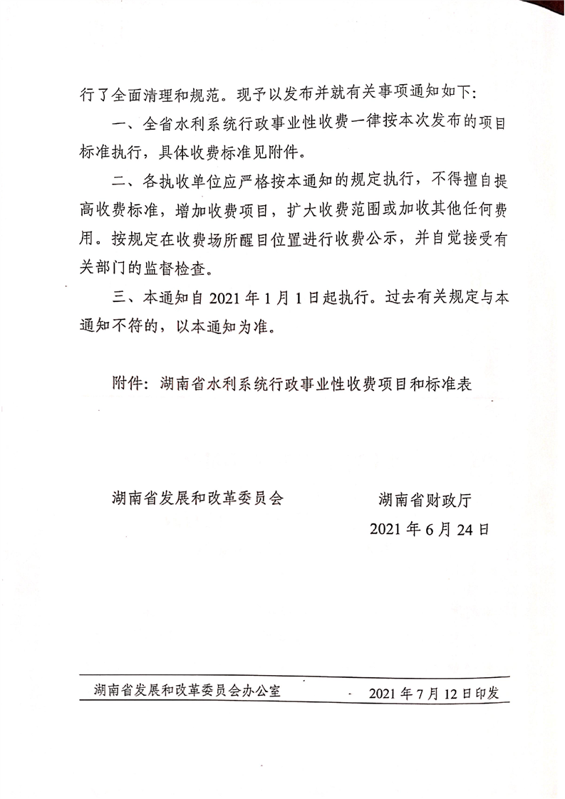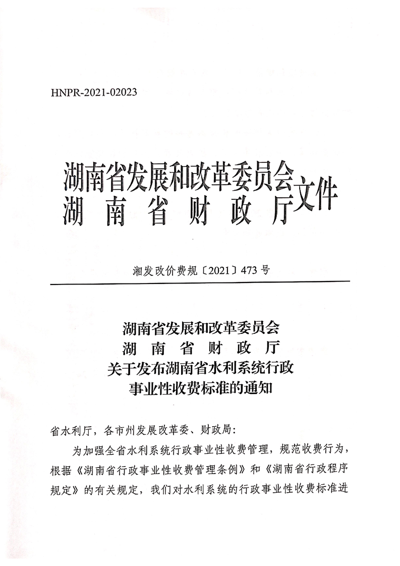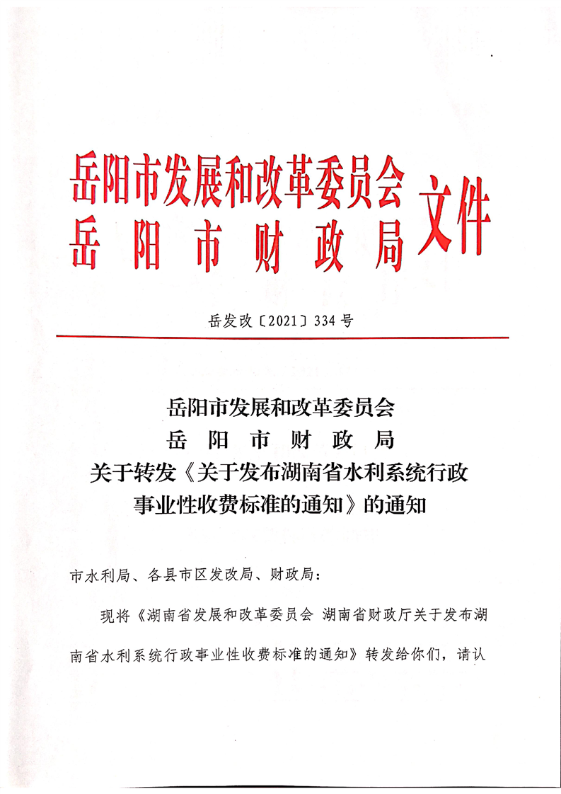 關于轉發《關于發布湖南省水利系統行政事業性收費標注的通知》的通知