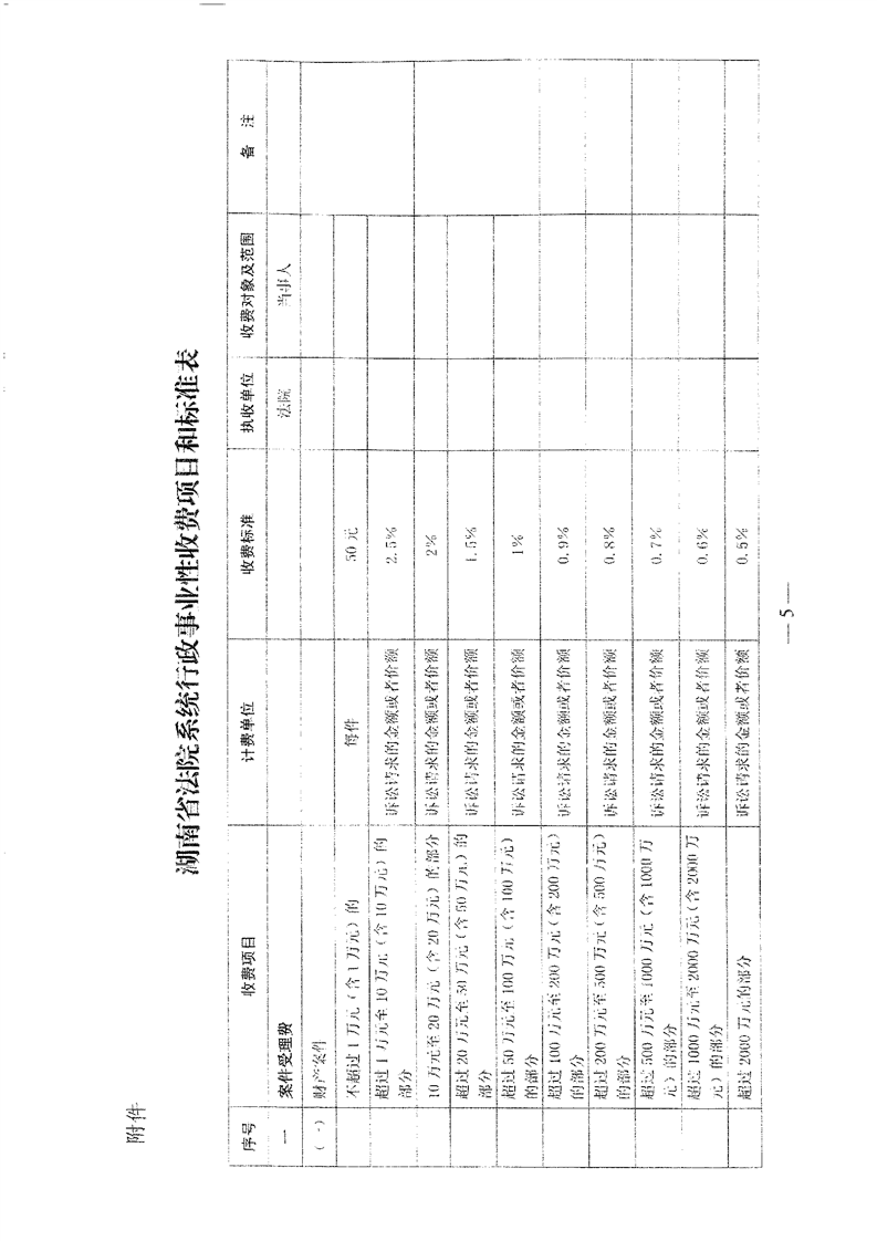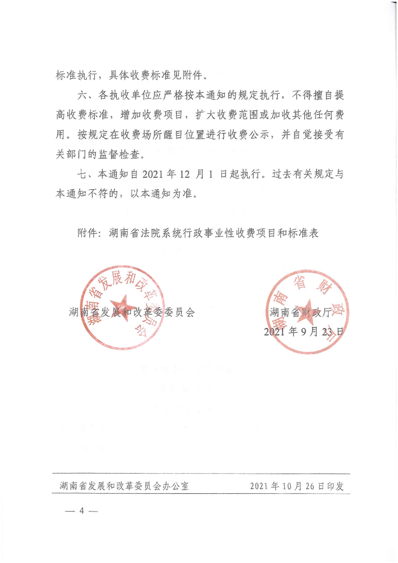關于發布湖南省法院系統行政事業性收費標準的通知