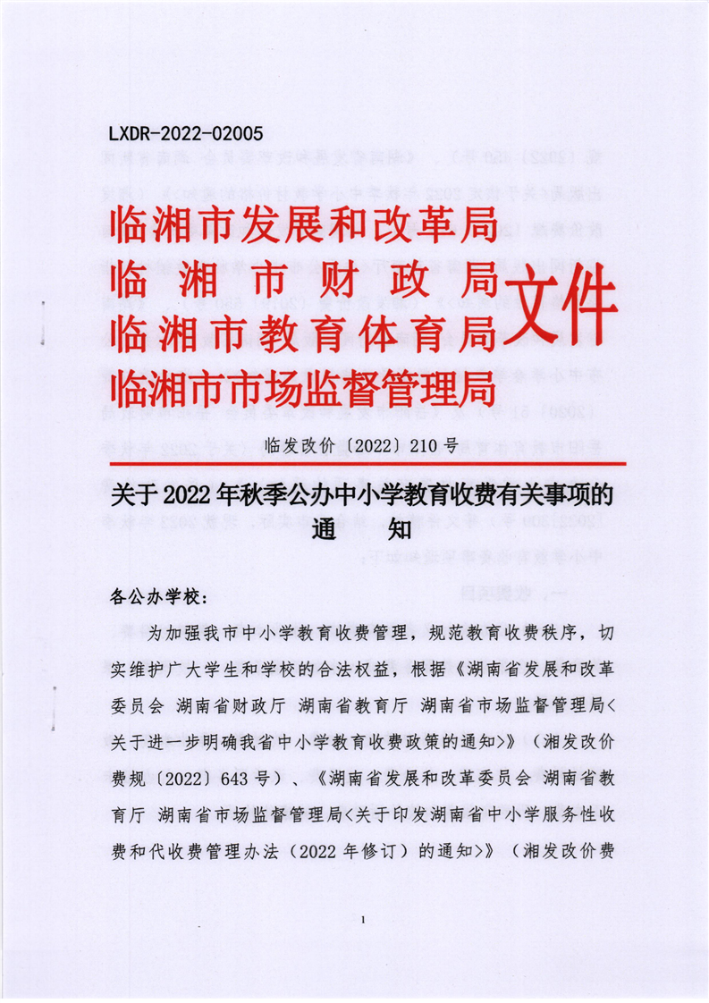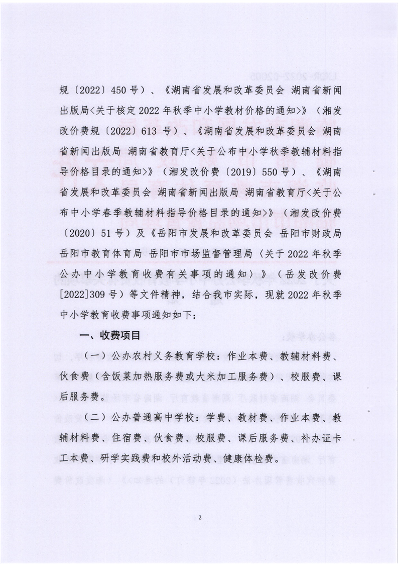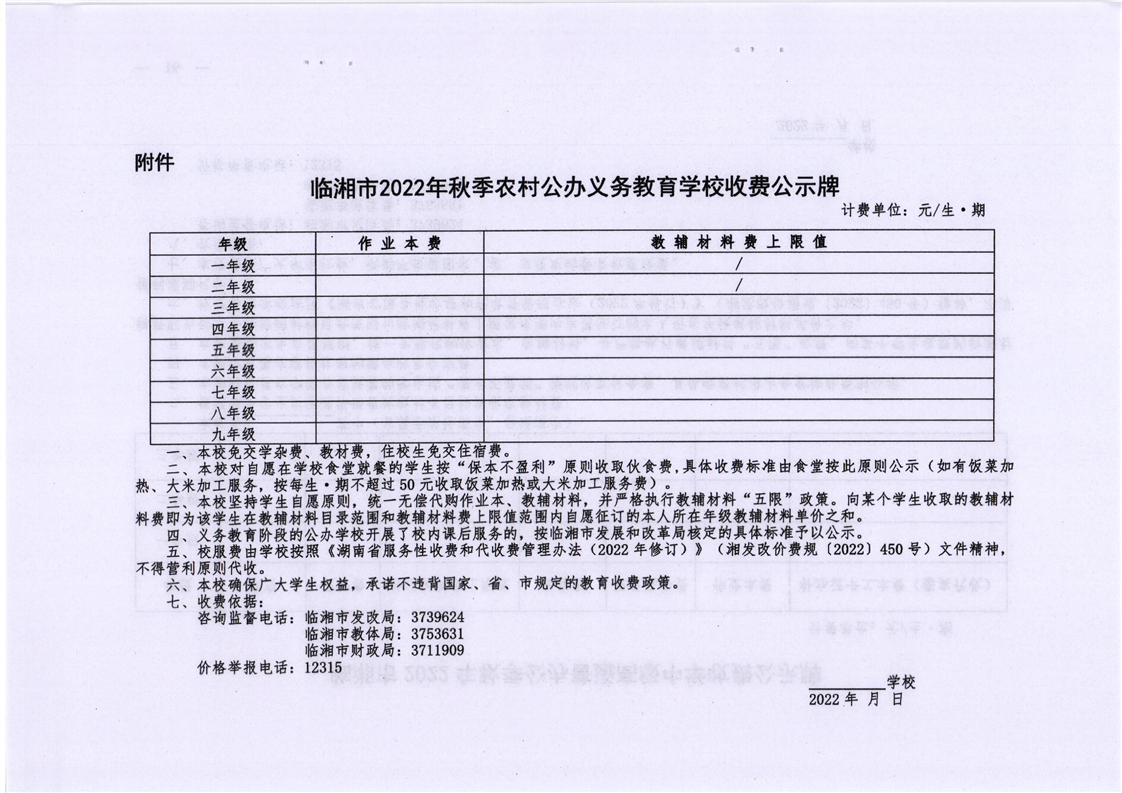 關(guān)于2022年秋季公辦中小學(xué)教育收費(fèi)有關(guān)事項(xiàng)的通知