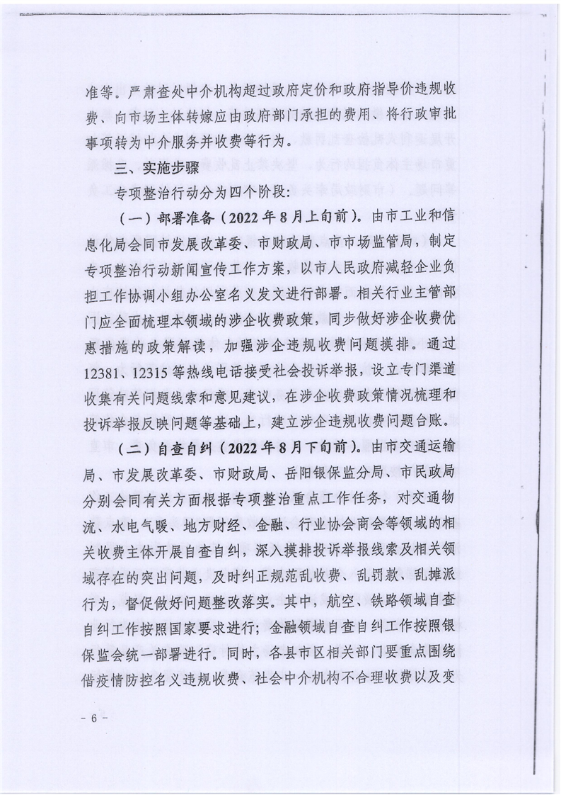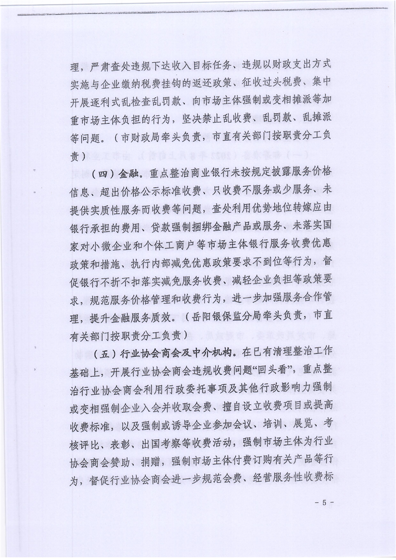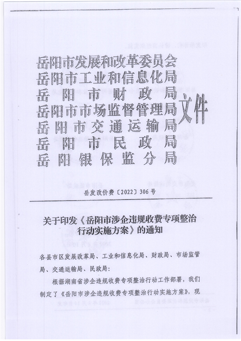 關(guān)于轉(zhuǎn)發(fā)《岳陽市涉企違規(guī)收費(fèi)專項(xiàng)整治行動(dòng)實(shí)施方案的通知》的通知