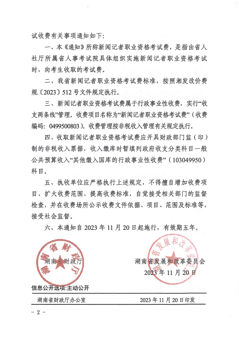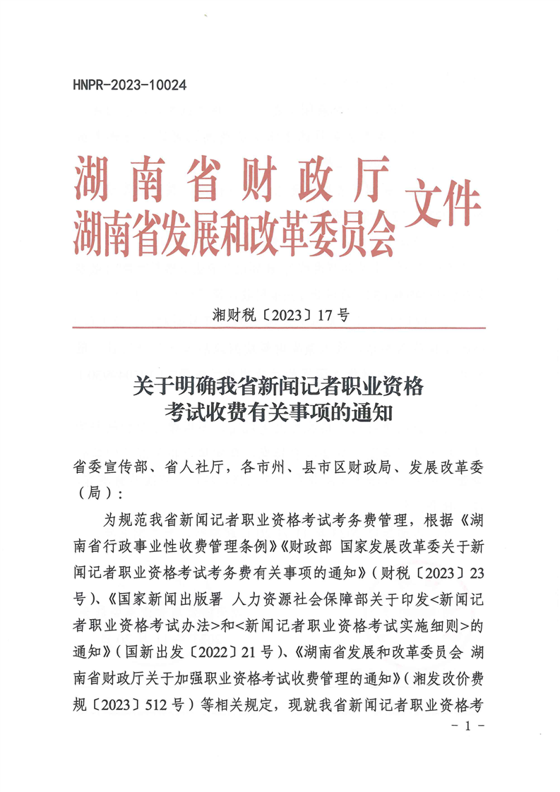 關(guān)于明確我省新聞?dòng)浾呗殬I(yè)資格考試收費(fèi)有關(guān)事項(xiàng)的通知