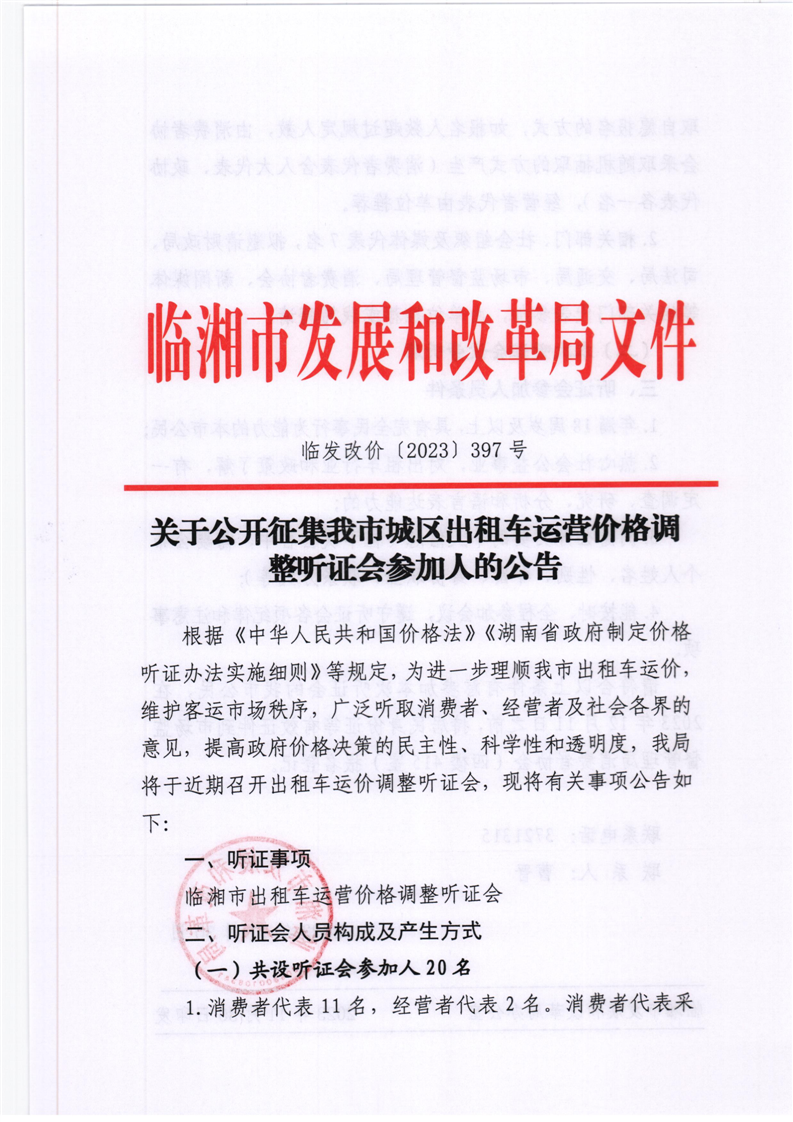 關于公開征集我市城區出租車運營價格調整聽證會參加人的公告