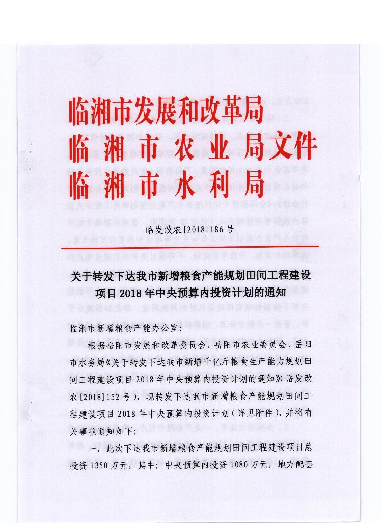 關(guān)于轉(zhuǎn)發(fā)下達(dá)我市新增糧食產(chǎn)能規(guī)劃田間工程建設(shè)項(xiàng)目2018年中央預(yù)算內(nèi)投資計(jì)劃的通知
