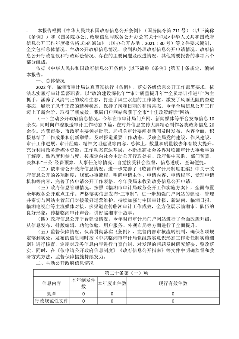 臨湘市審計局2022年度政府信息公開工作年度報告