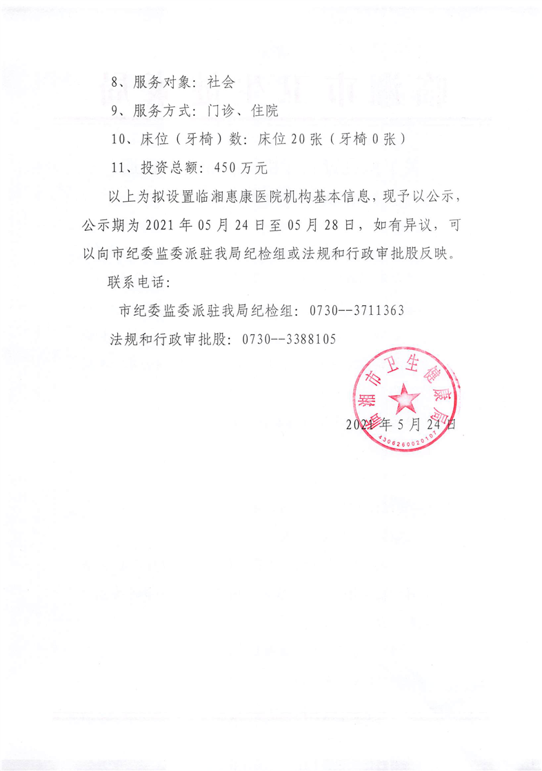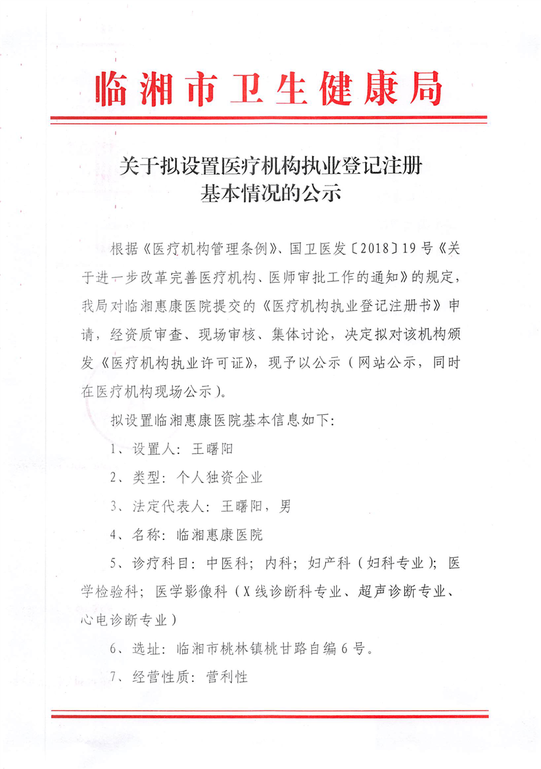 關于擬設置醫療機構執業登記注冊基本情況的公示